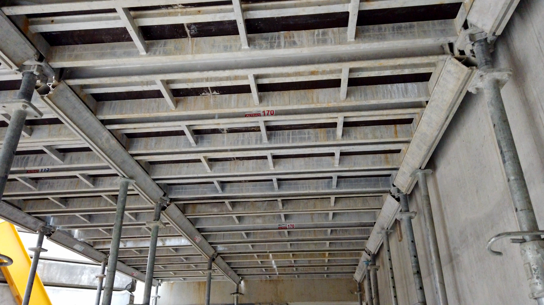 - The infrastructure area: we carried out near 3,300m² of formwork for slabs in Altradal (from December to February, rate 400m²/week): we adapted to the curved shape of the building to form from 3.2 to 4 meters in height.