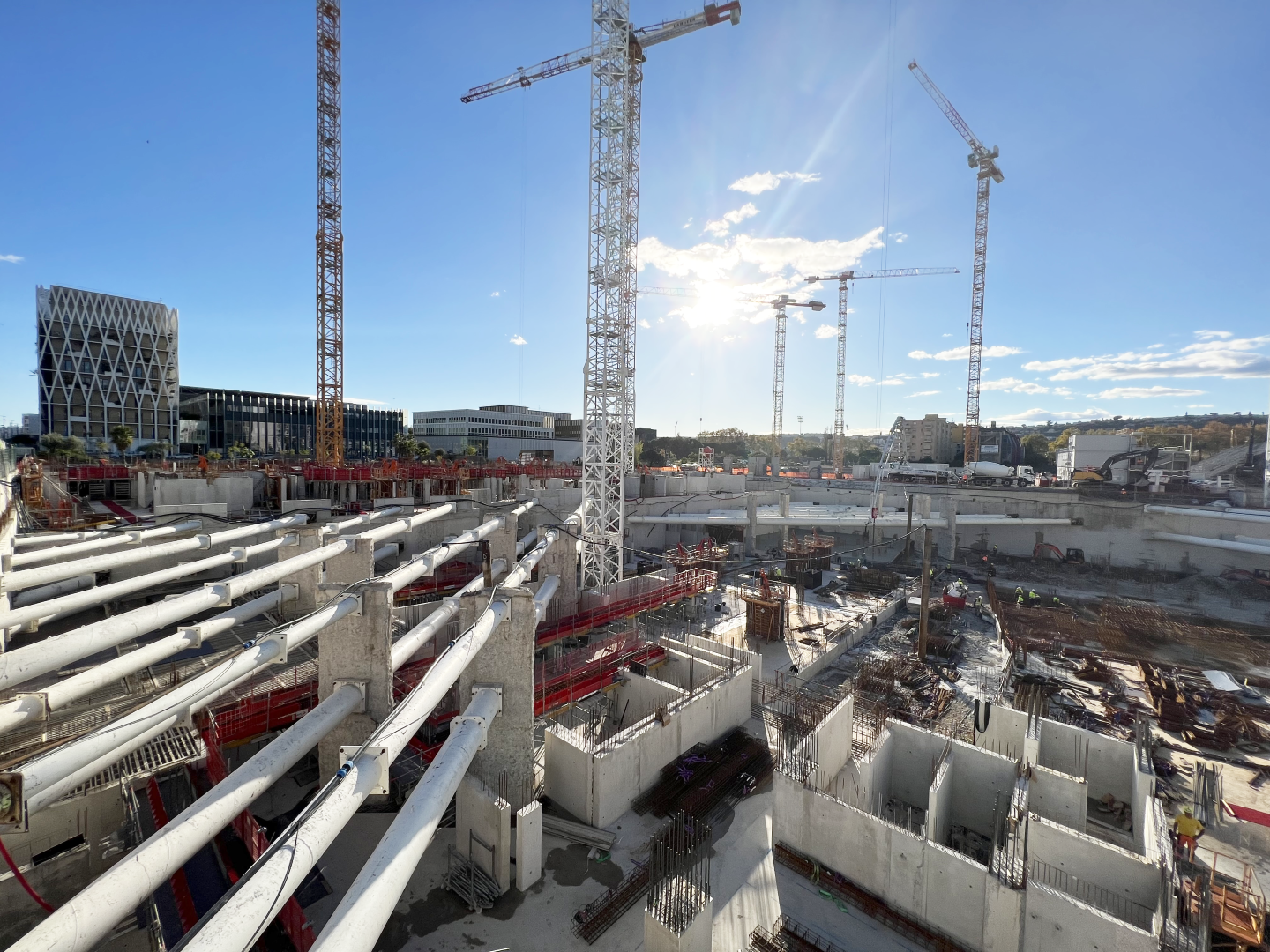 - Our teams worked on 2 zones: the North zone (3 cranes) 18 628 m2 of floor and 3 015 ml of beams and the South zone (2 cranes) 8 818 m2 of floor and 1 634 ml of beams