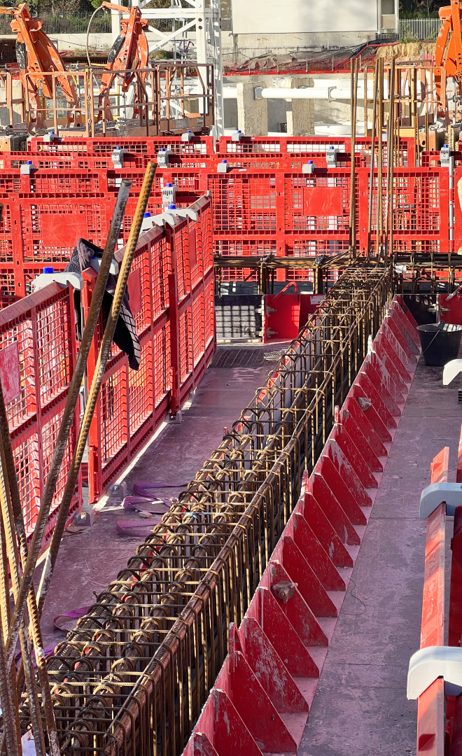An edge formwork solution was installed on the SECUTABLE EVO formwork tables, the difficulty of the operation lay in the linear of the beams to be produced (4.7 kilometers).