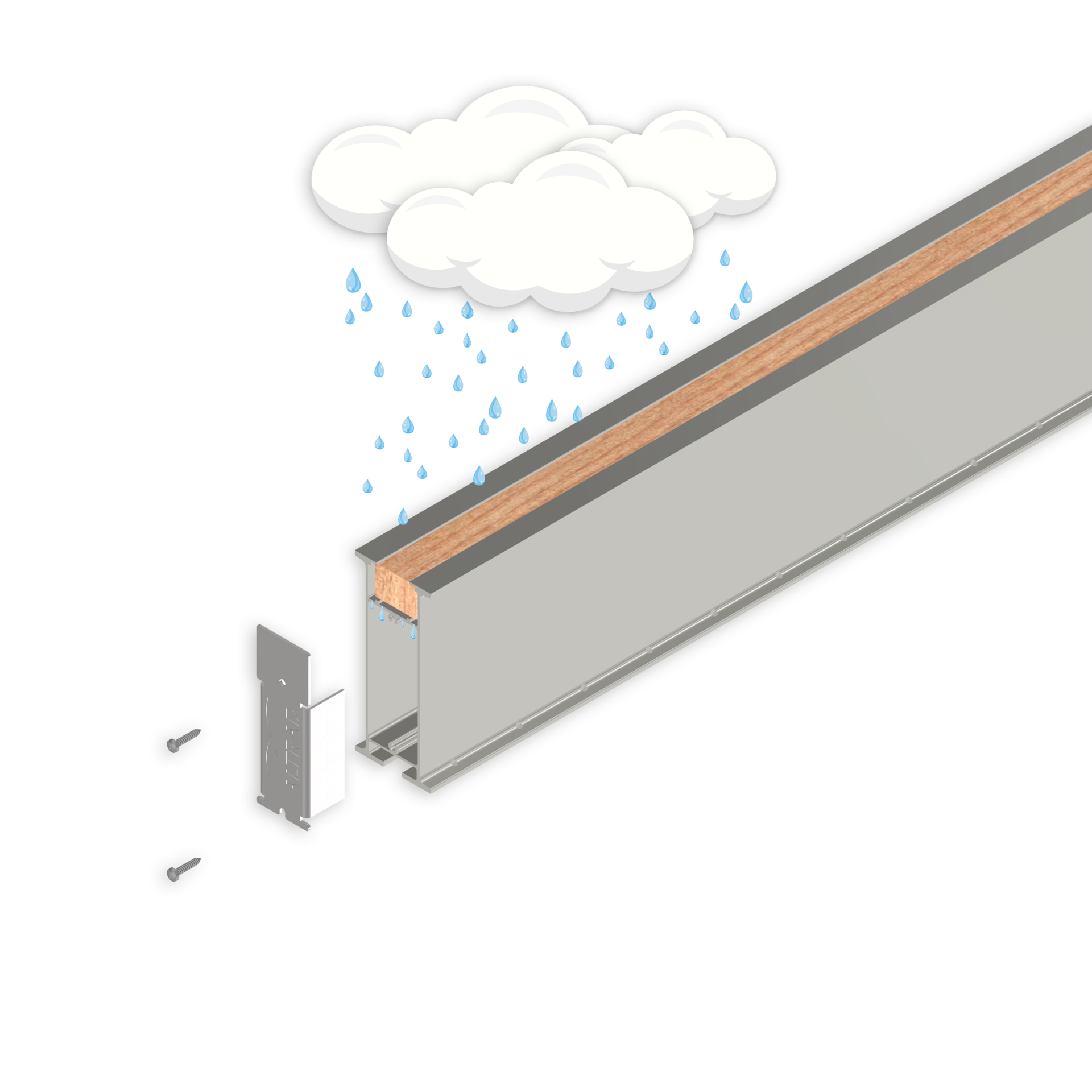 This solution has many features as it is equipped with a wooden cleat, a drilling network on the heel and a Halfen type fixing groove. These technical features allow in all cases :
