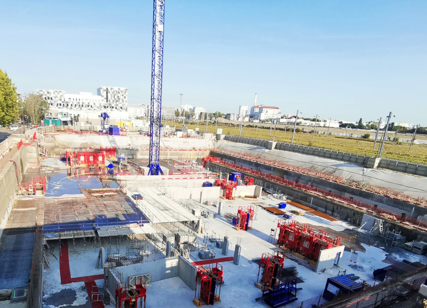 Le chantier a démarré en décembre 2019 et pourra accueillir de 60 à 1500 étudiants. Au total nous avons fourni 1400 M² de coffrage de dalles ALTRADAL en rotation pour la réalisation de dalles béton d'une épaisseur de 35cm. Une cadence de 250 m² de coffrage par jour a été réalisé par nos équipes de montage.