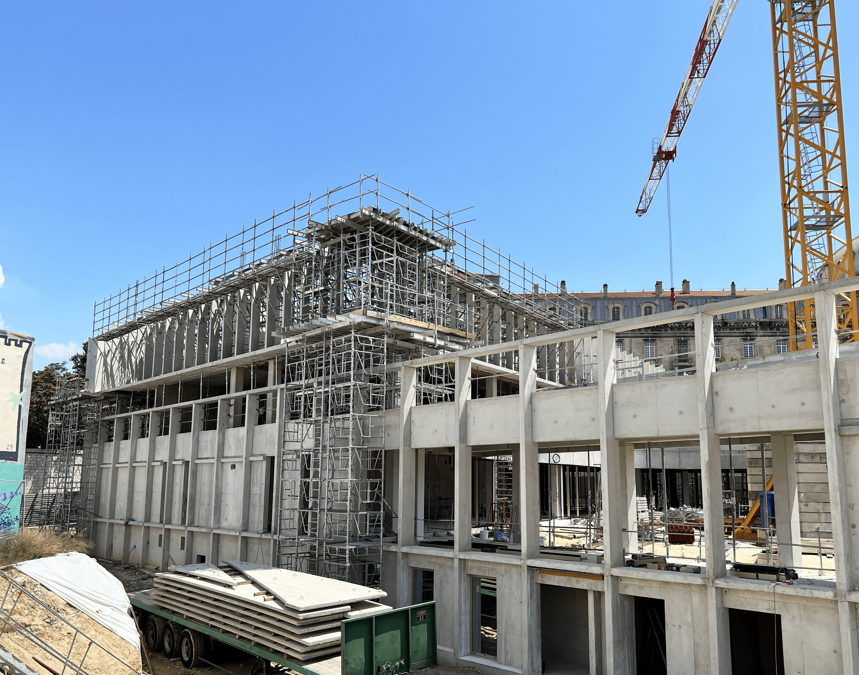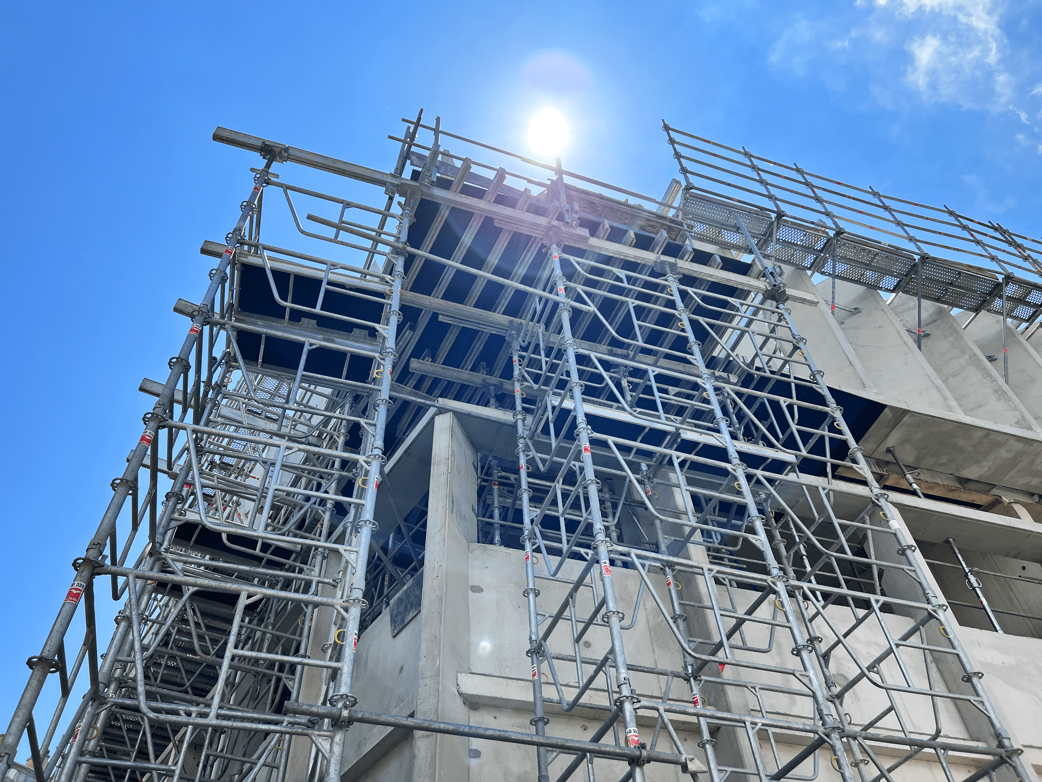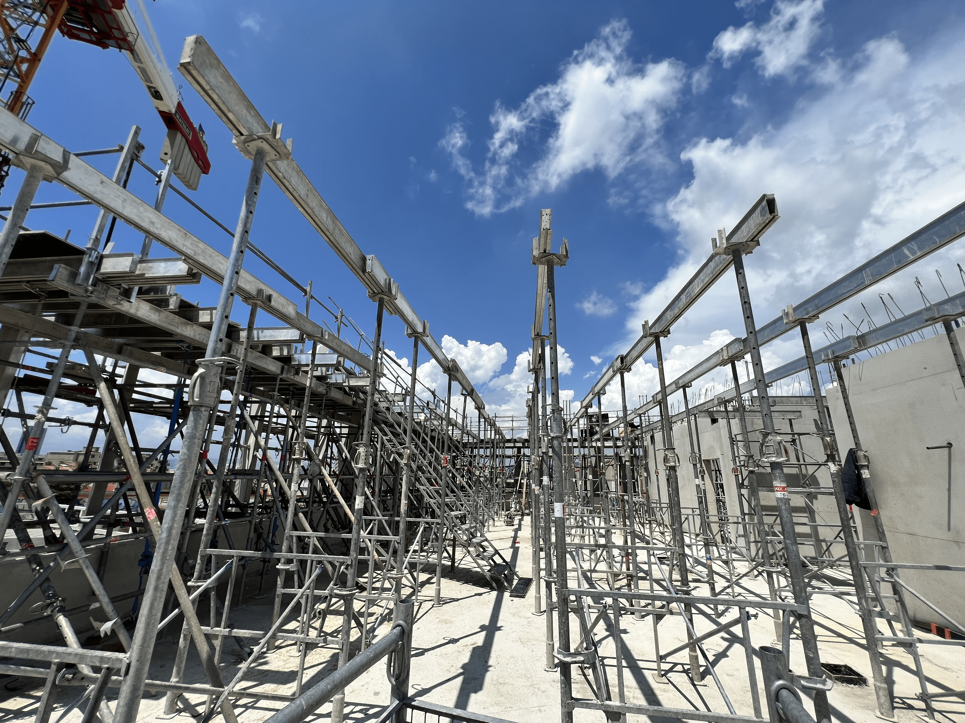 Pour le moment, nous avons fourni plus de 80 tonnes de tours d'étaiement Staflex acier/aluminium, de tours d'étaiement HD 320, de cadres étais et 25 tonnes d'échafaudage Metrix. La complexité du bâtiment nécessite une partie en échafaudage permettant de monter une partie de l’étaiement. Le matériel d'échafaudage et d'étaiement ont été mixés pour réaliser une prestation globale et technique de qualité.