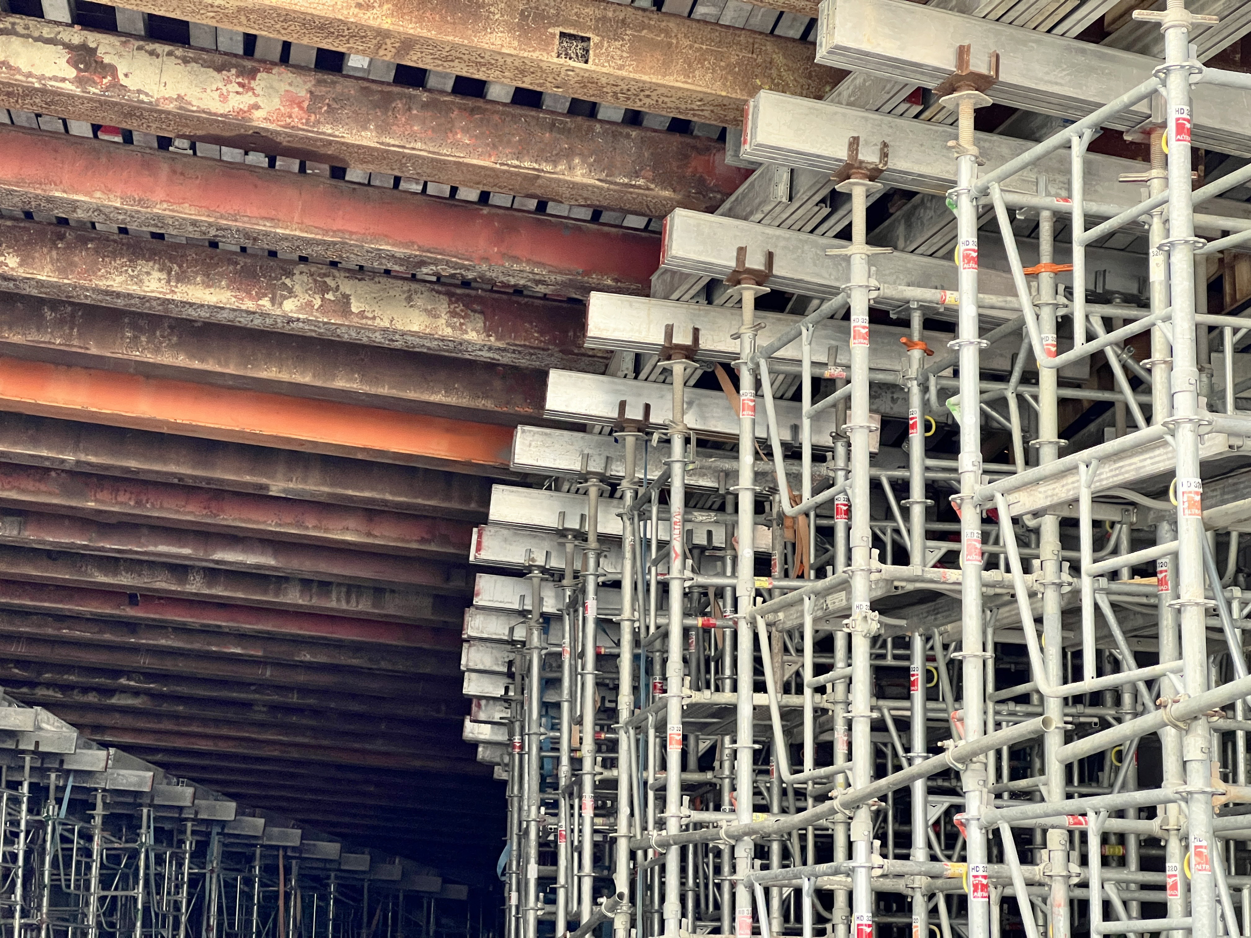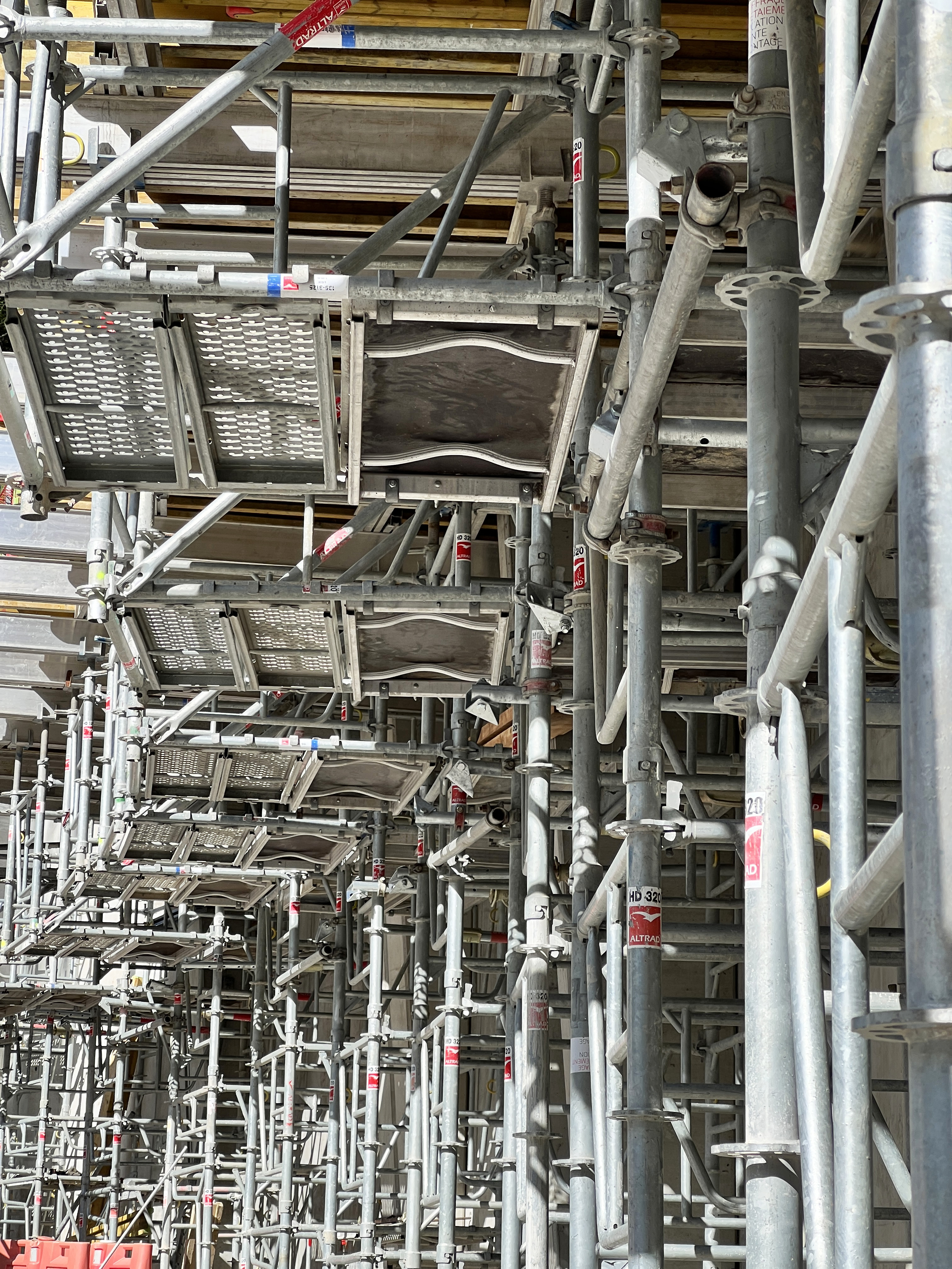 Notre mission principale est d’intervenir sur les 3 plots les plus techniques (plots 1, 2 et 3 – zones circulaires), avec une solution complète d’étaiement sur mesure :