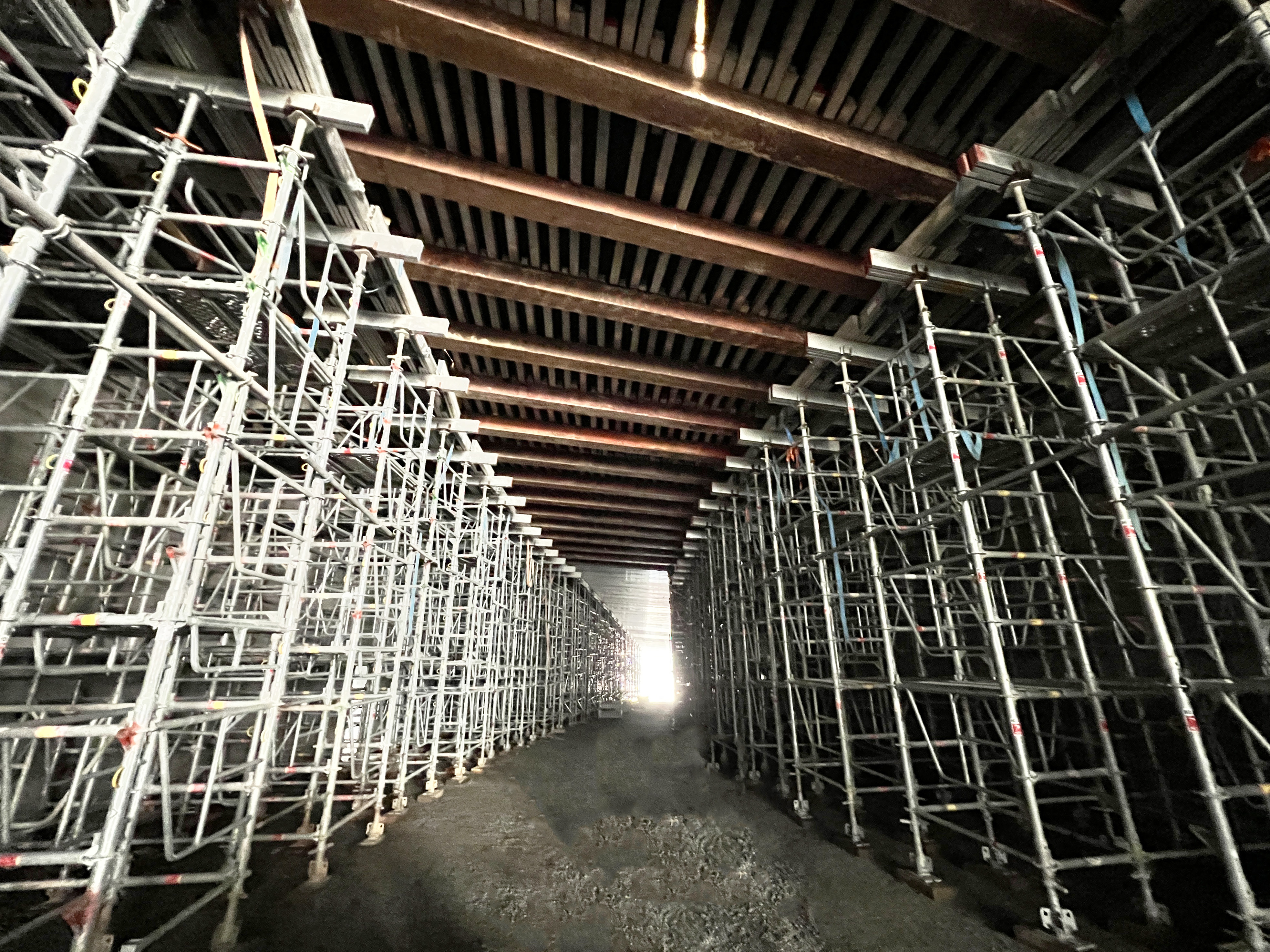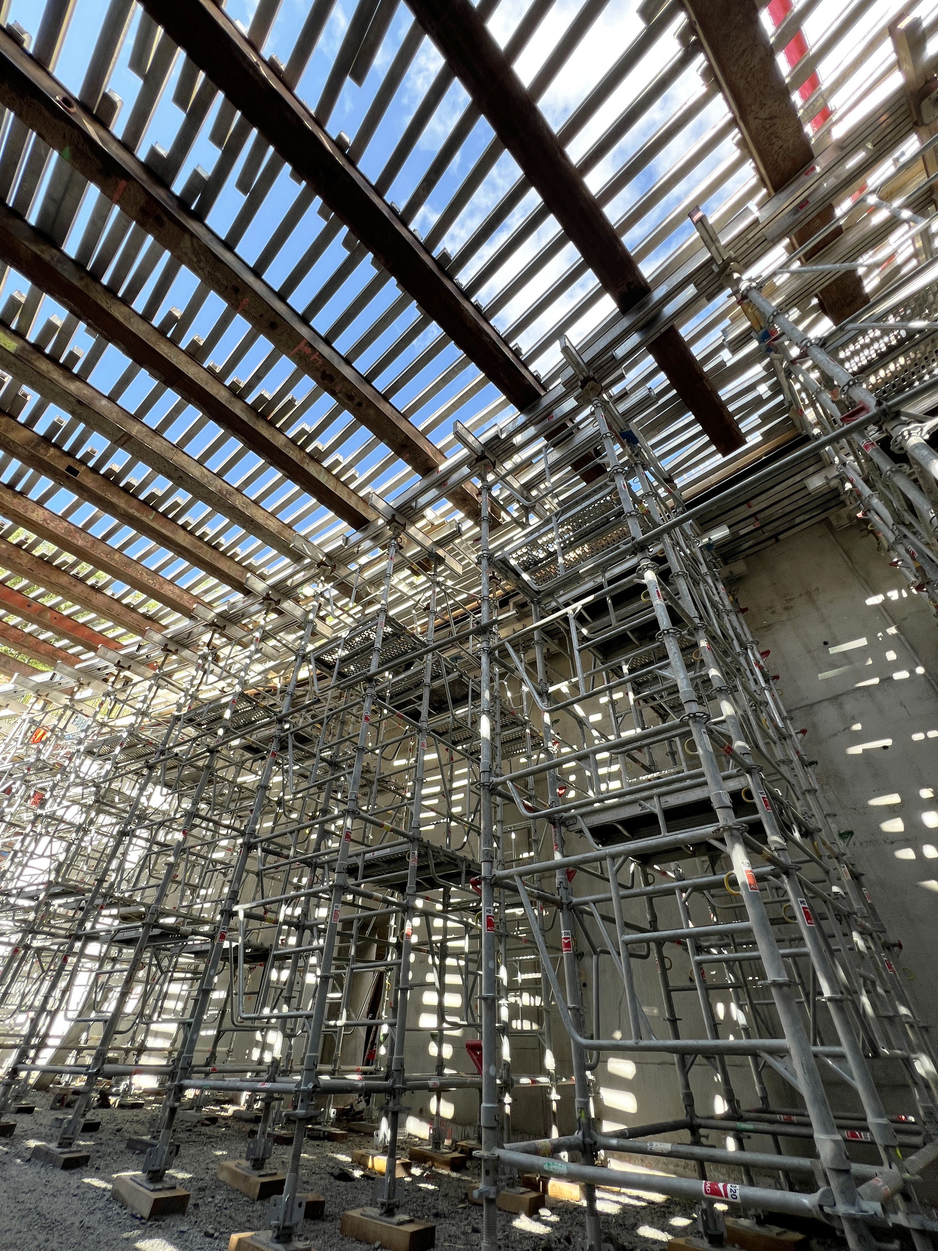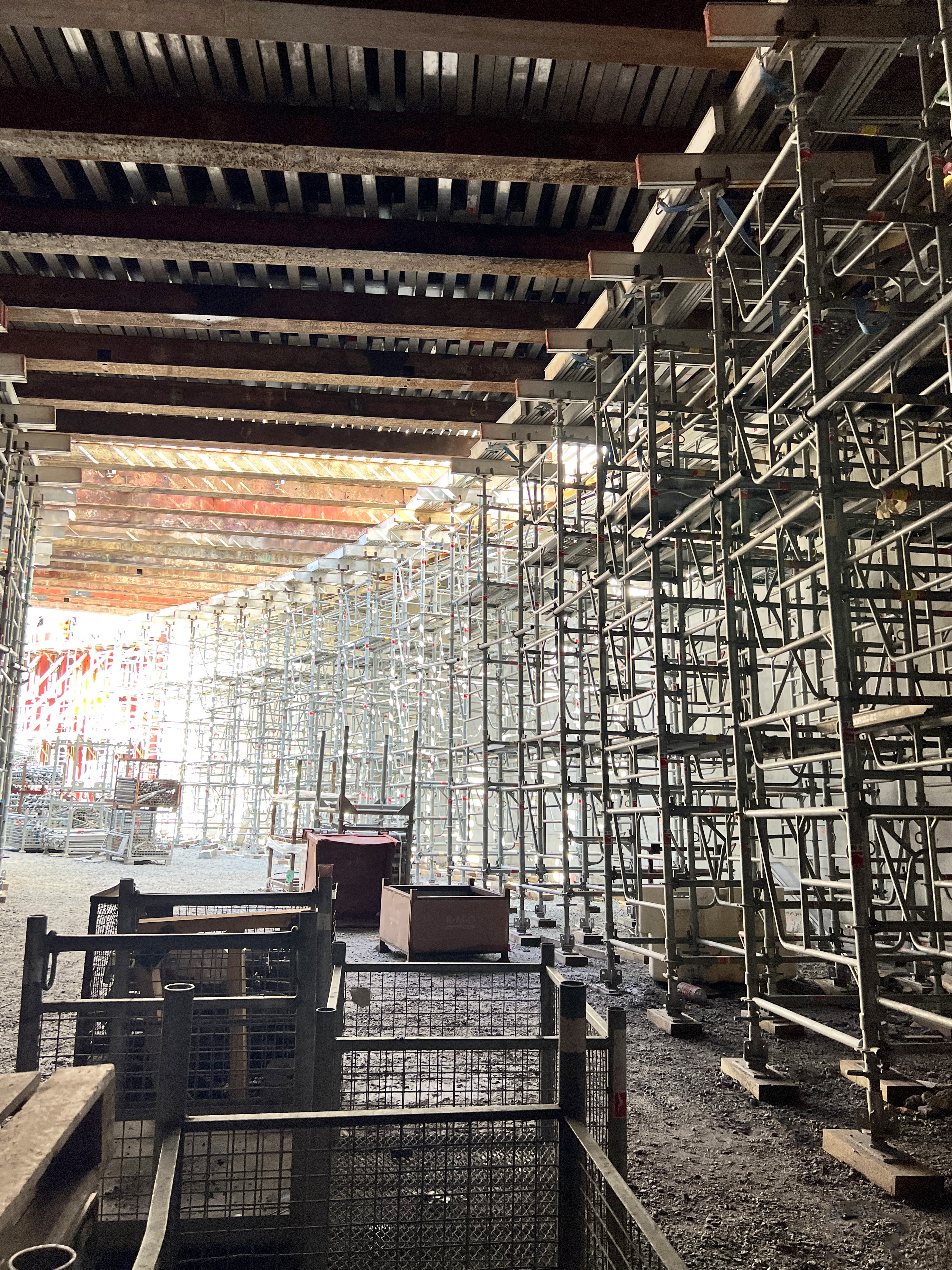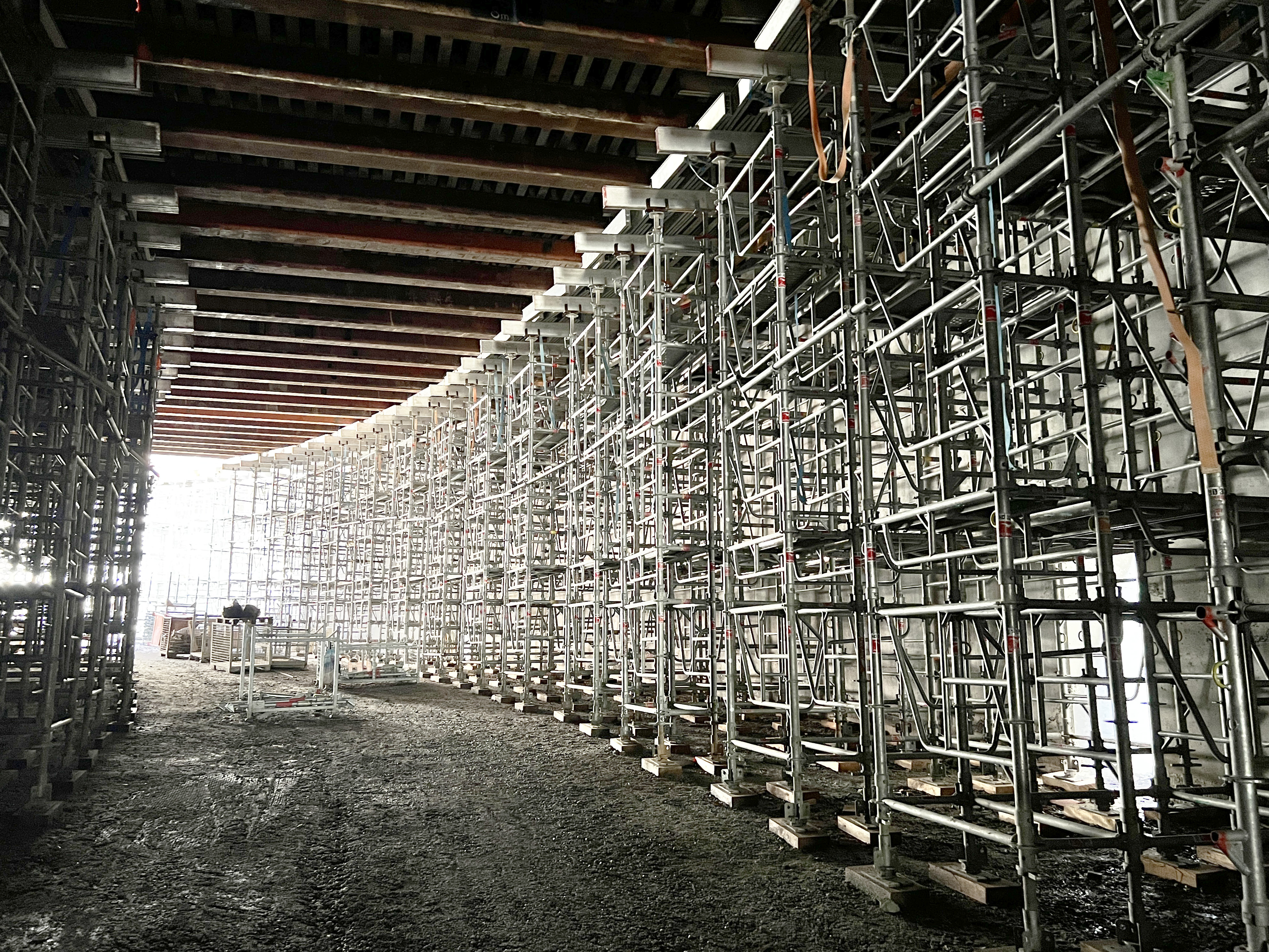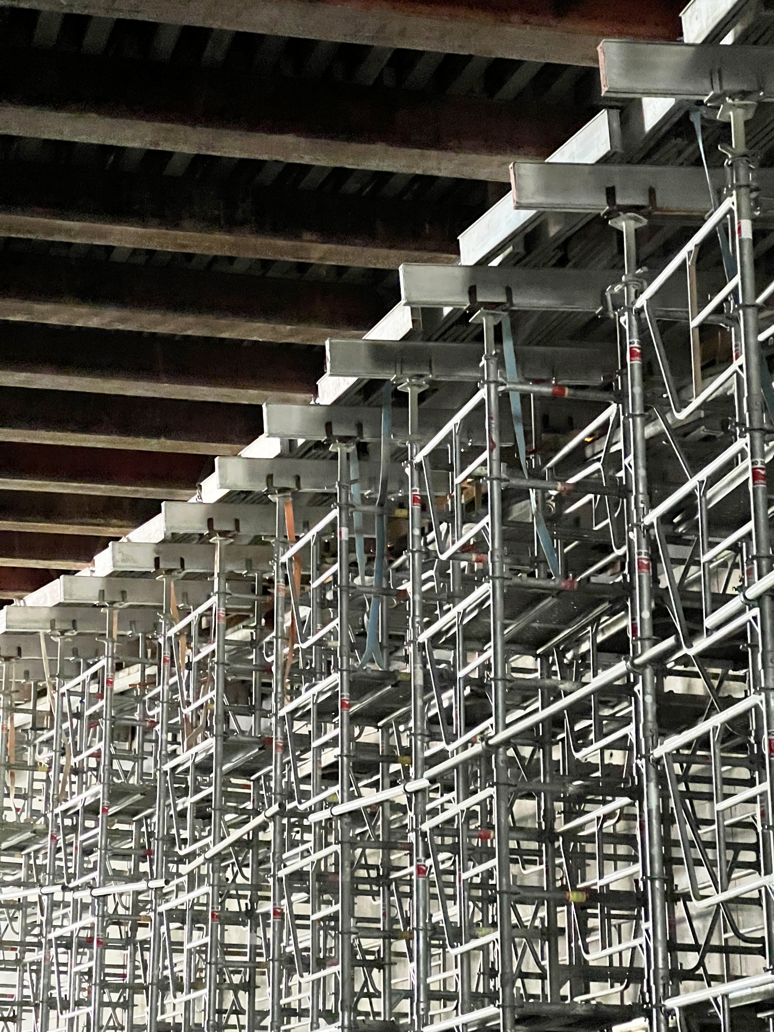 Pour répondre au besoin de notre client, notre équipe d’une dizaine de compagnon a mis en place : des tours d’étaiement HD320, et des poutres aluminium H20 R-Max & 20 EVO