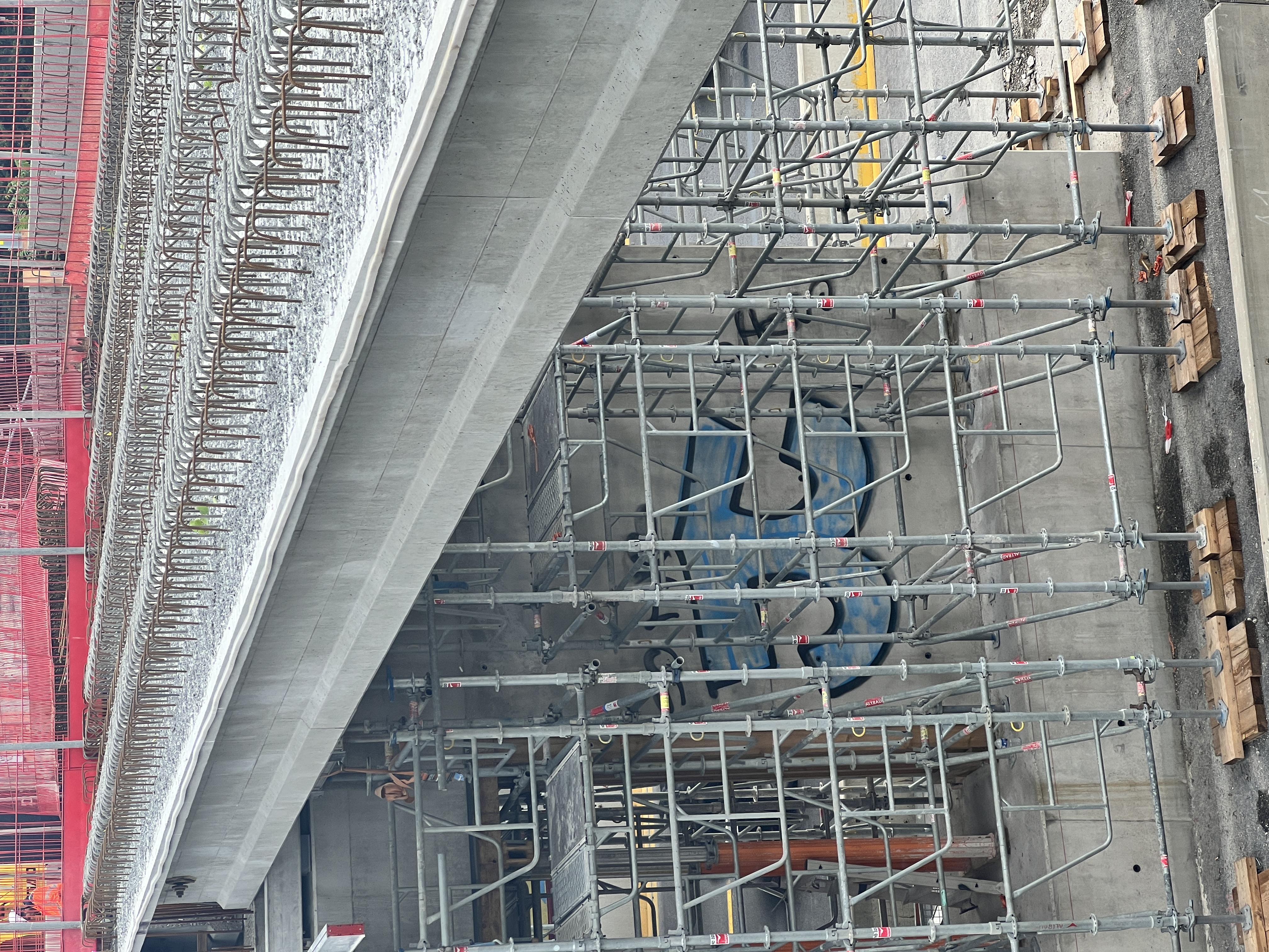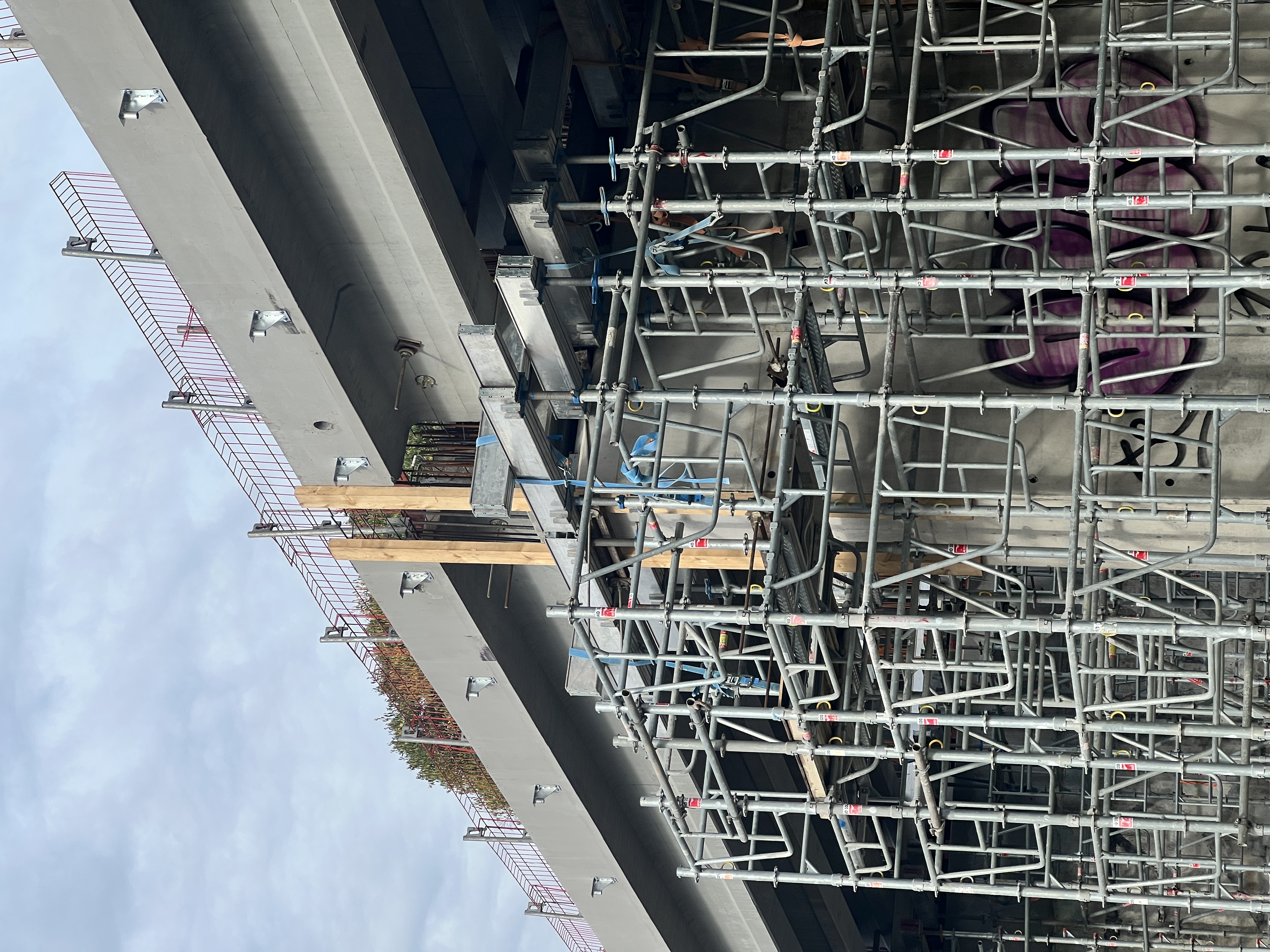 - Montage du platelage de travail pour le sciage des culées C0 et C2, avec mise en place d’Escaplus pour l’accès sécurisé aux zones en hauteur,