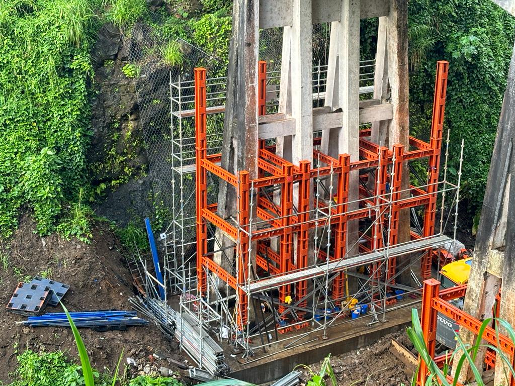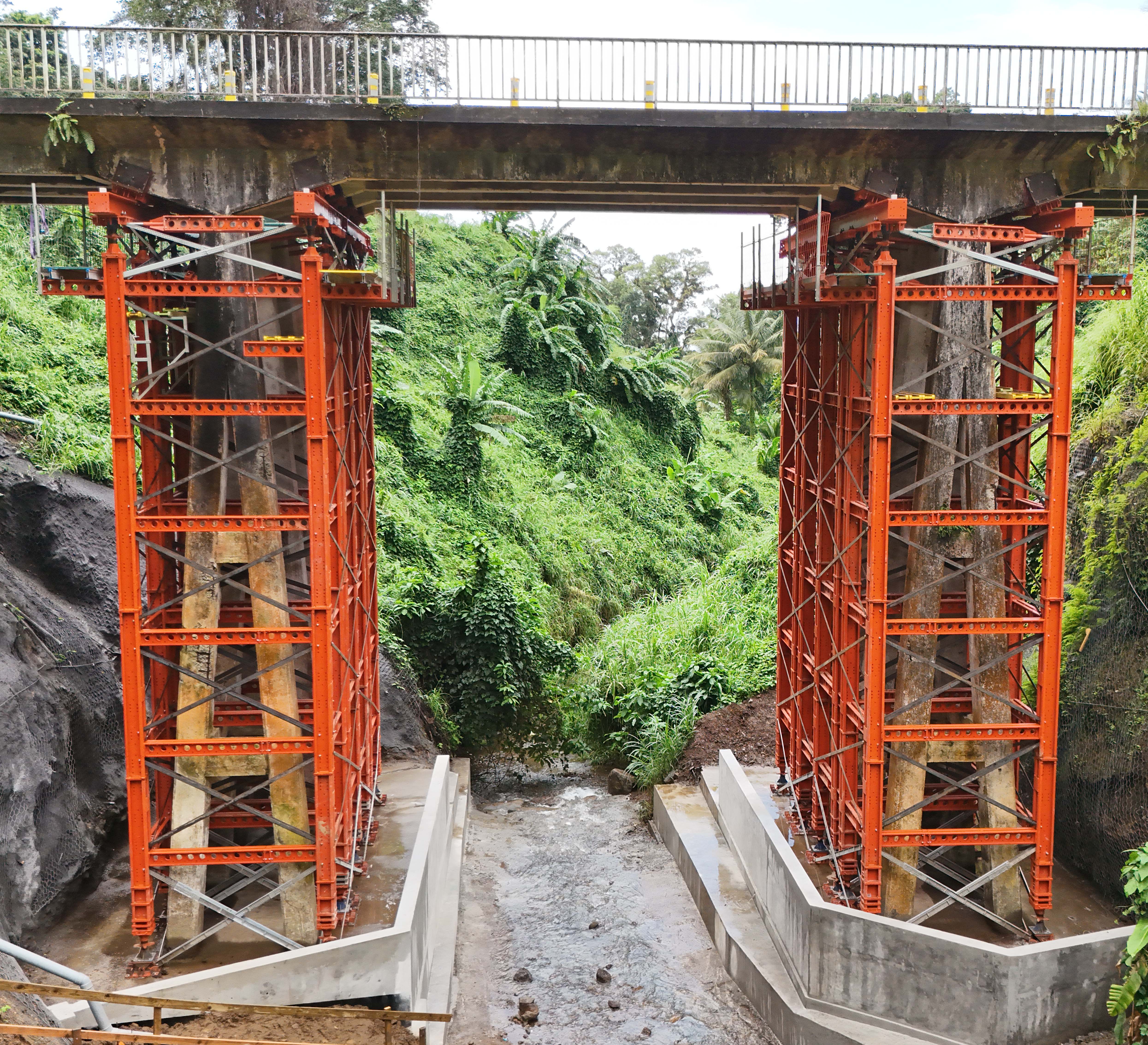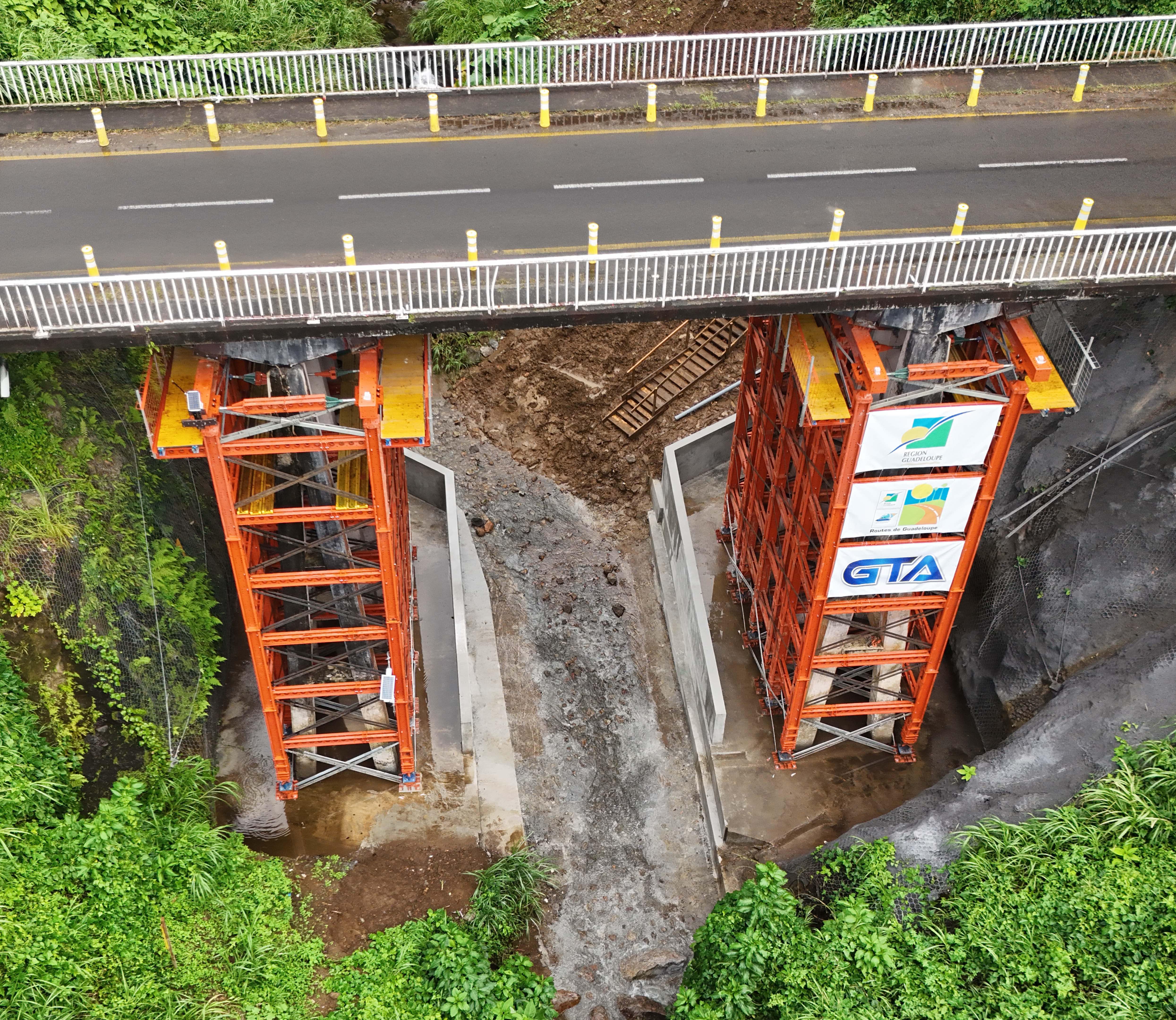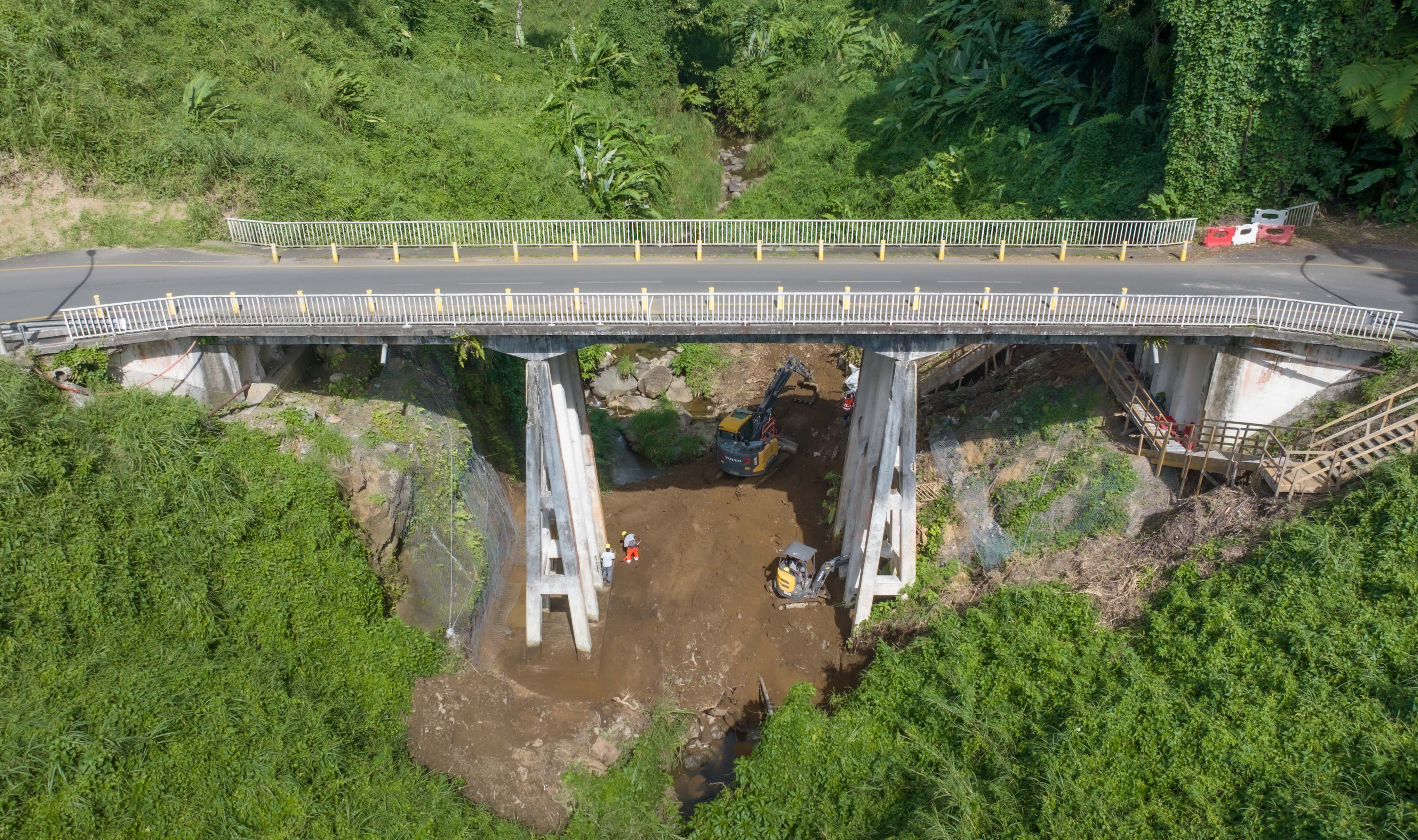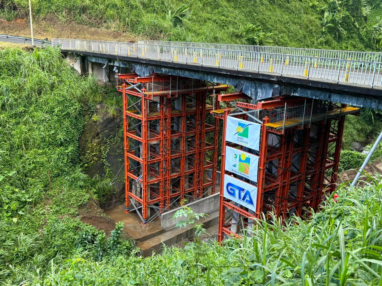 La société Grands Travaux Antillais (GTA) en collaboration avec Routes de Guadeloupe (gestionnaire de la voie et maître d’oeuvre) a été chargée par la RÉGION GUADELOUPE, le maître d'ouvrage, d’assurer les travaux pour réaliser un confortement afin de sécuriser ce pont dans les plus brefs délais.