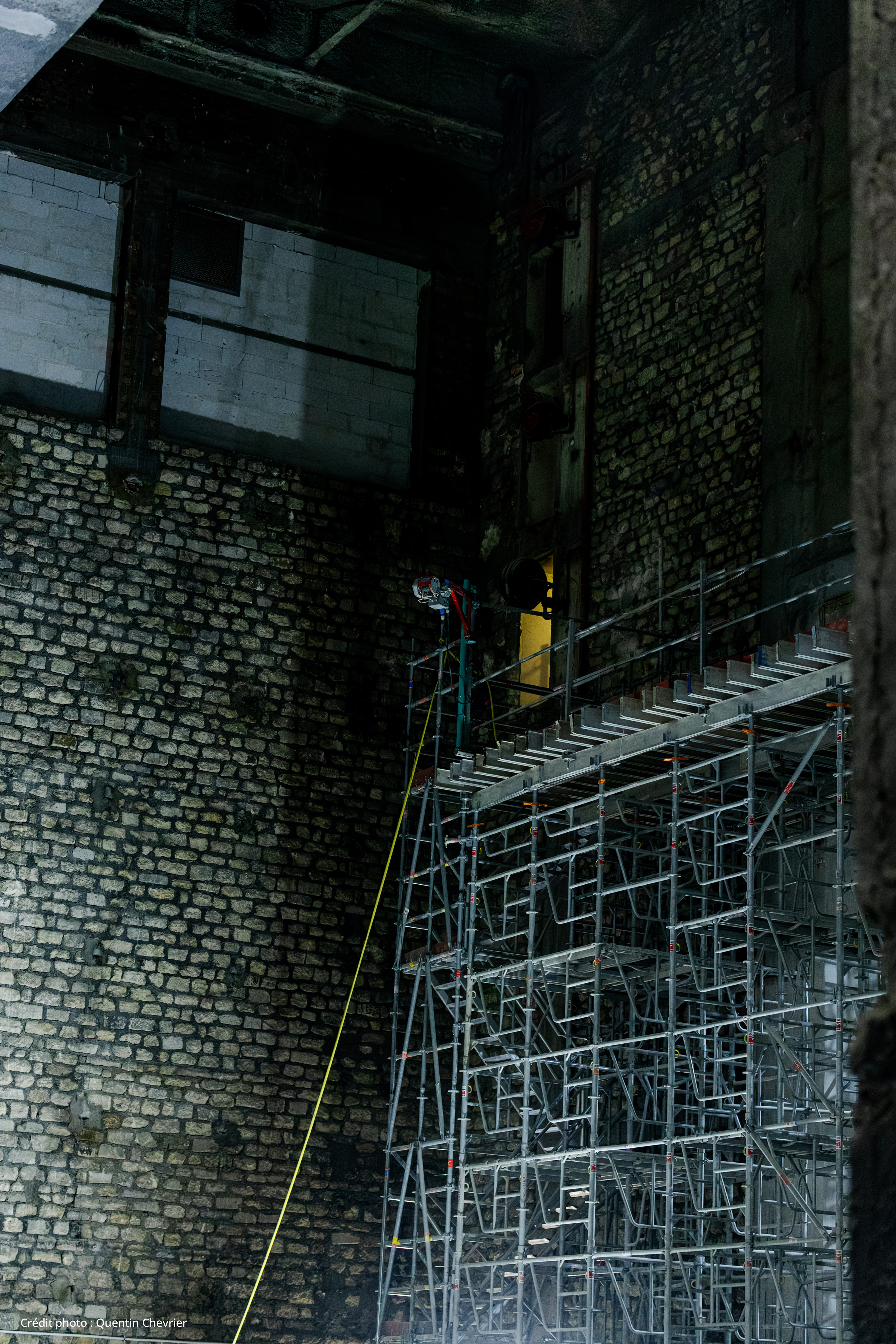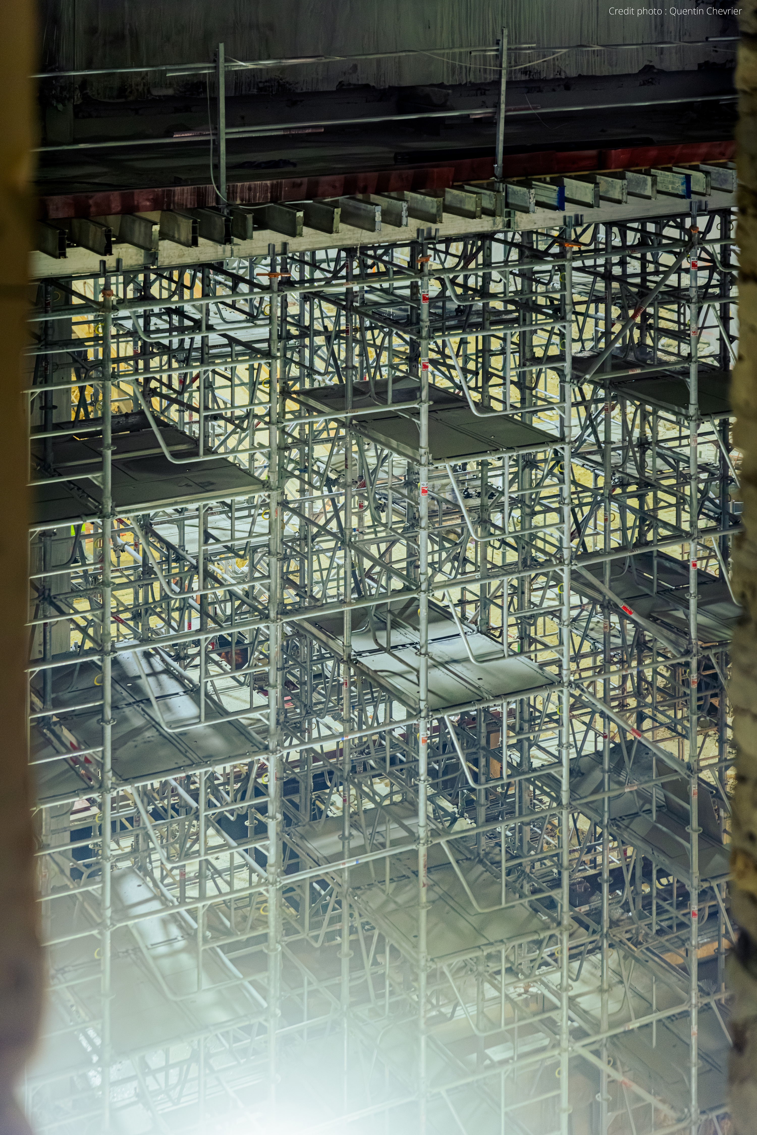 Au total plus 40 tonnes de tours d'étaiement HD320 ont été utilisé avec un platelage final à plus de 10m de hauteur. Une équipe de 4 personnes a été mobilisé pour ce projet afin de palier aux différents défis techniques :