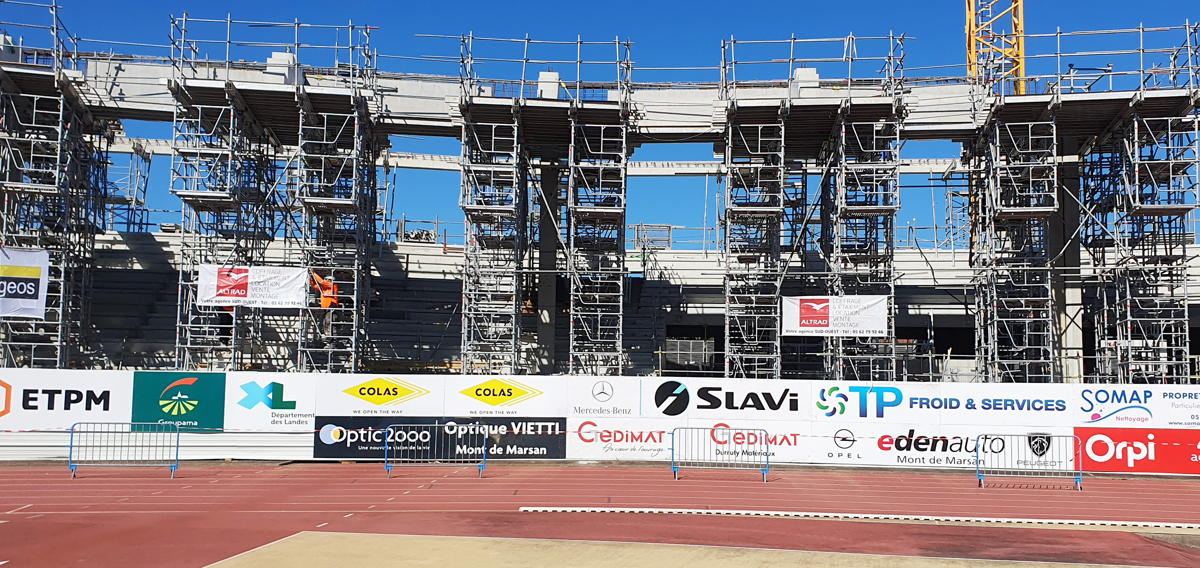 Depuis plusieurs mois, nos équipes de l'agence Sud Ouest travaillent sur le chantier de la tribune Nord du Stade Guy Boniface à Mont de Marsan (40) pour le compte de notre client Daudigeos.